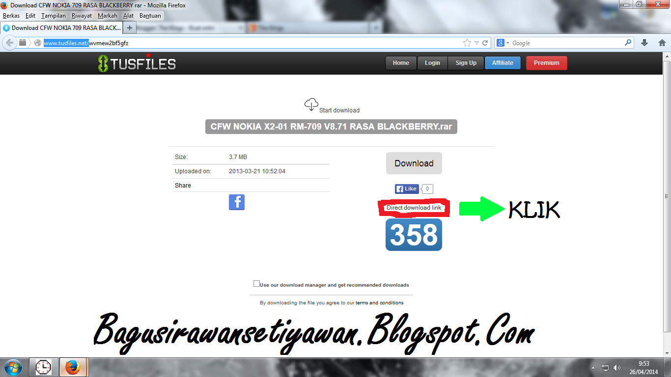 1. anda download salah satu file di alamat http://www.tusfiles.net/. admin akan mencoba mendownload salah satu file di link tersebut.